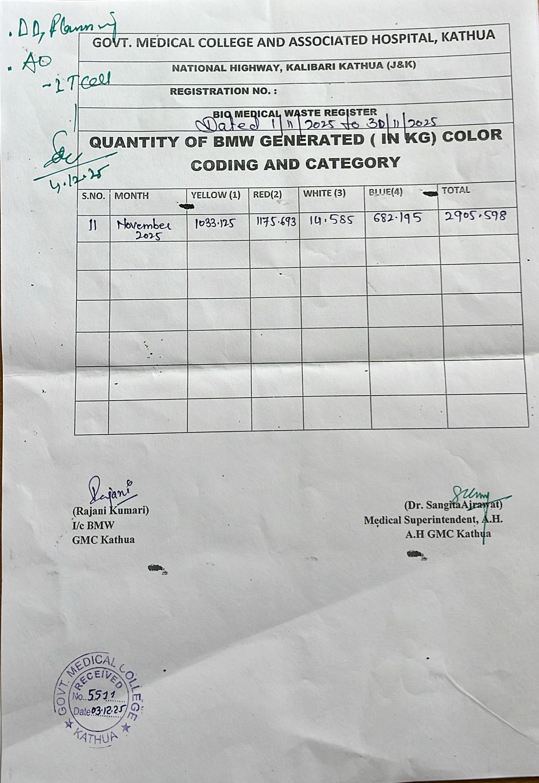• Monthly Report of BMW on Dated 01-12-2023 to 31-12-2023.