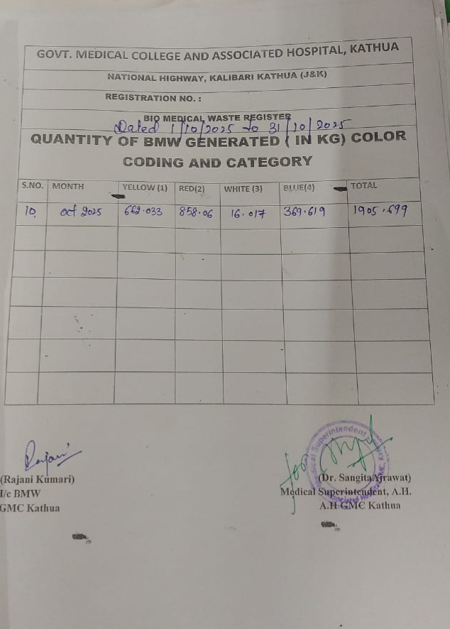 • Monthly(October) Report of Bio Medical Waste